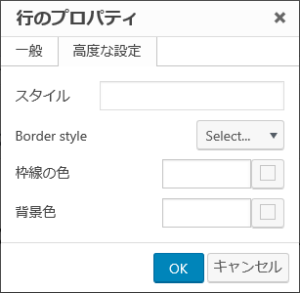 「行のプロパティ」の「高度な設定」には「スタイル」、「Border Style」、「枠線の色」および「背景色」以上4つの設定項目がある。