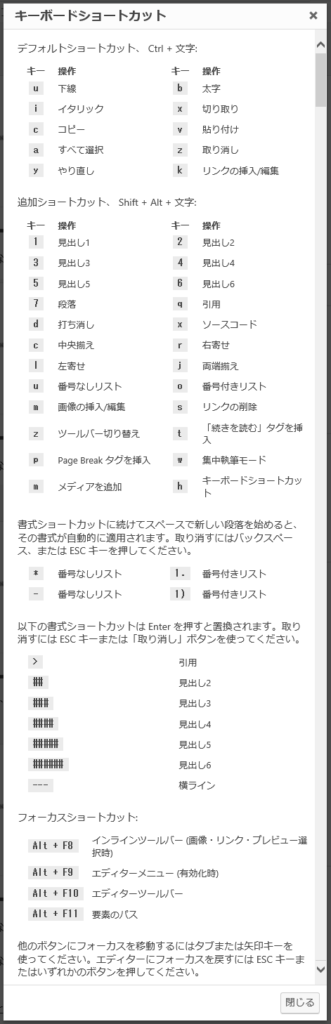 各文字列や画像はクリックできない。既定のショートカット説明の一覧みたい。ゆえに”?”ということか。