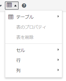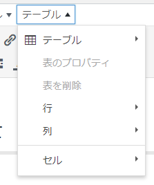 ツールバーの「テーブル」メニュー1階層目はボタン表示されているそれと同じだった。今回は最下層まで同じか?確認していく。